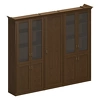 - Боковые и промежуточные декоративные панели шкафов выполнены из шпонированной плиты МДФ с брусками утолщения из плитных материалов и имеют общую толщину 50 мм; фронтальные лицевые торцы панелей обложены массивом дуба с продольными декоративными канелюрами;