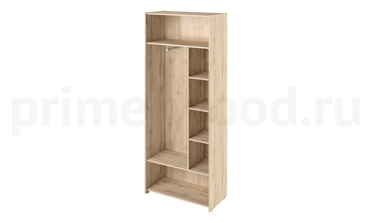 Каркас шкафа для одежды широкого комбинированного. Вешалка-штанга поперечная. Справа полки. Двери приобретаются отдельно.