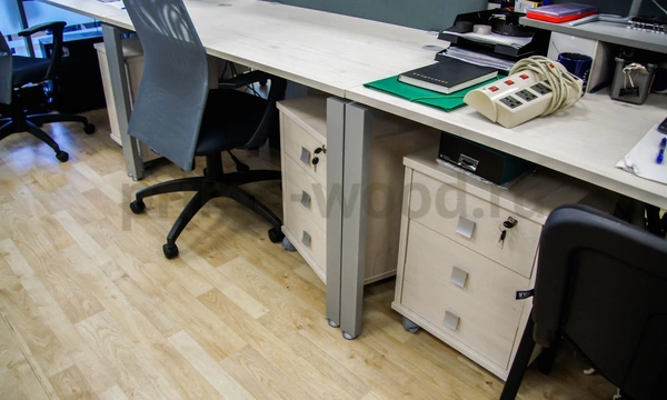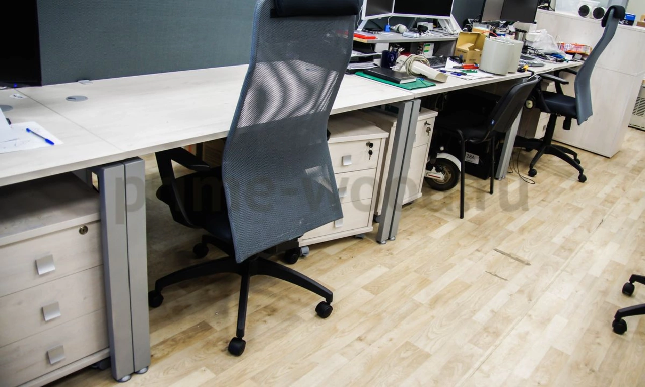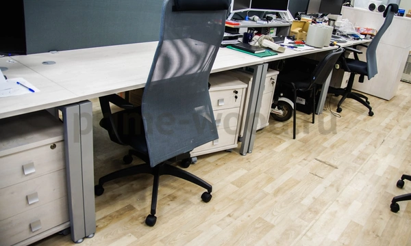 Для комплексного проекта БайтЭрг выбрана мебель из коллекции Style и столы на металлокаркасе Metal System. Благодаря светлому сдержанному тону цвета "Дуб Наварра" офисное пространство выглядит просторнее. Лаконичные линии и современная фурнитура коллекции Style подчёркивают дин амичный характер работы компании. Шкафы - купе успешно вместили в себе необходимое оборудование и материалы, а благодаря раздвижным дверцам и небольшой высоте они не загромождают офис ни зрительно, ни с точки зрения функциональности. Тканевые экраны эффективно разграничивают пространство и служат дополнительной поверхностью для размещения заметок и схем. Современные кресла KB-8N с эргономичными спинками из сетчатого материала обеспечивают комфорт работы в течение всего дня.