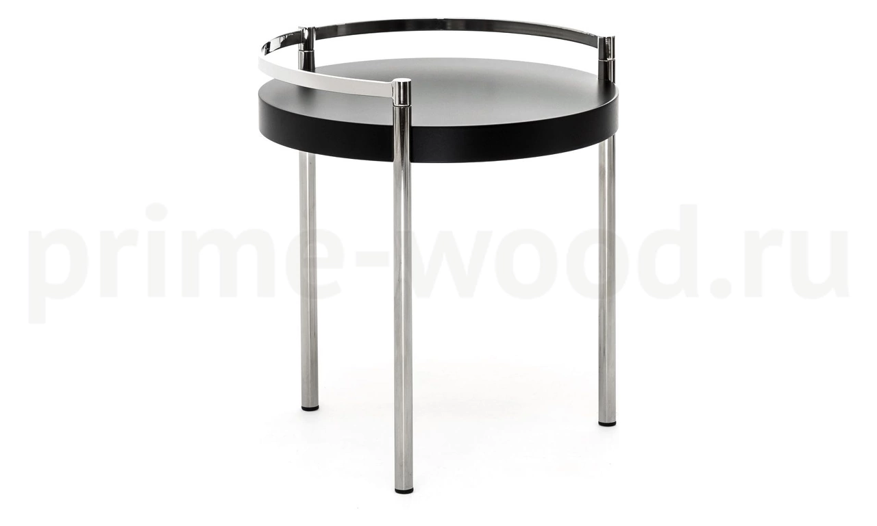 Высота 56 см, хромированная база со столешницей из МДФ, диаметром 50 см, в черном и белом цвете.